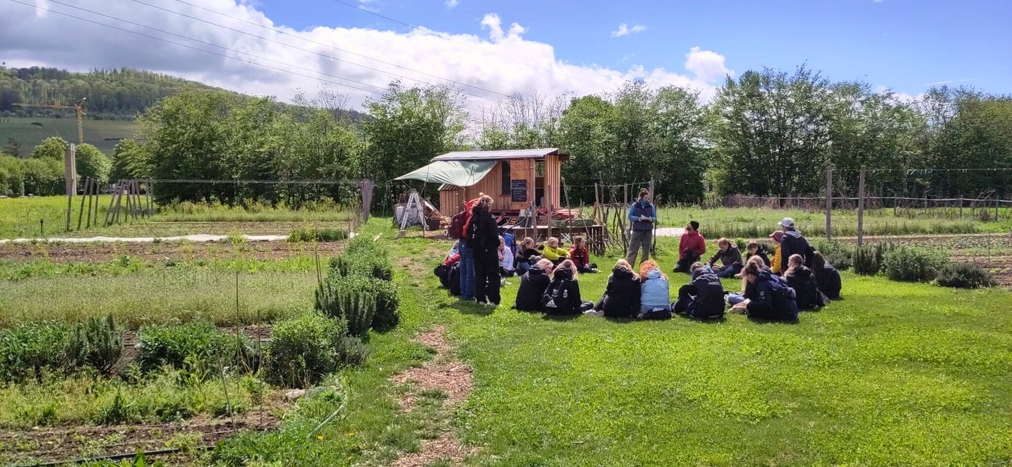 Seit 2023 entsteht im Klappergarten auch ein Lehrgarten. Einzelne Gruppen, u.a. Schulklassen haben den Klappergarten bereits besucht und konnten im Austausch mit Johanna & Tom viel über die Regeneration von Natur, regenerative Landwirtschaft, Natur- und Klimaschutz, Biodiversität und ökosoziale Projekte lernen.