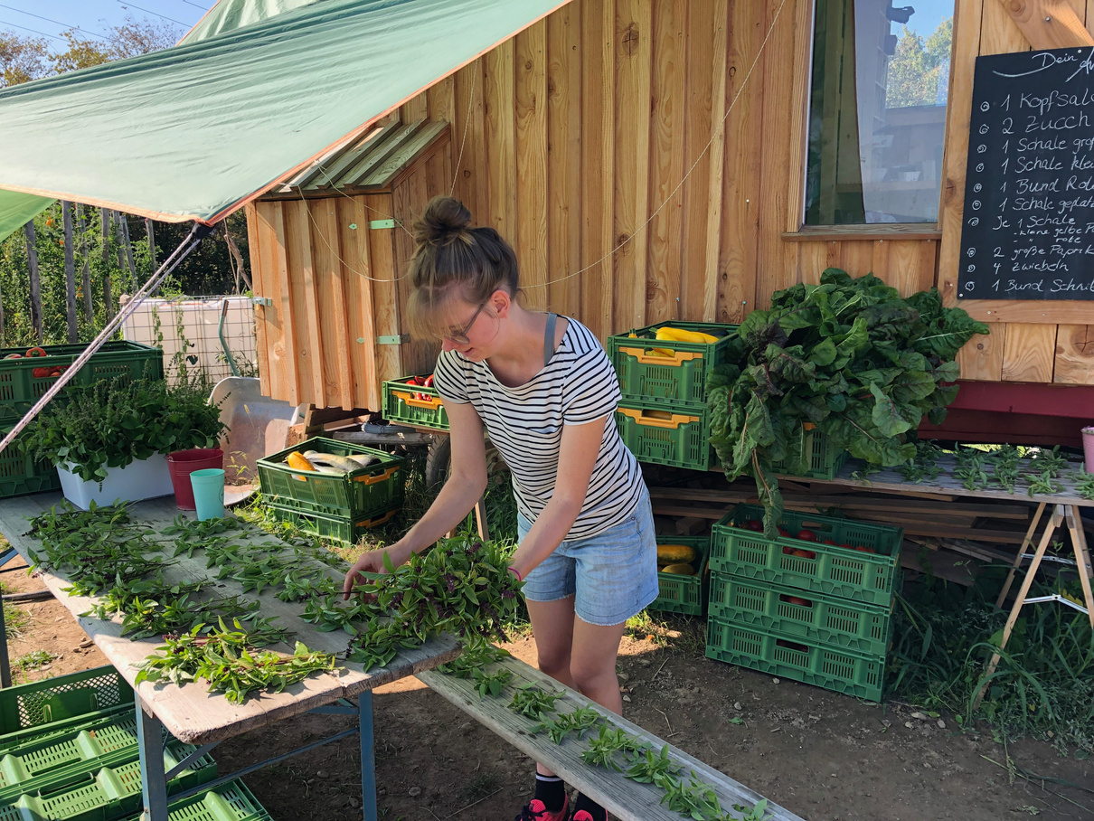 Wir bauen auf kleiner Fläche eine große Vielfalt an Gemüse, Kräuter und Blumen in Handarbeit an. Wir verwenden keine Mineraldünger oder Pestizide. Dafür viel Herz, Aktion und Fürsorge.